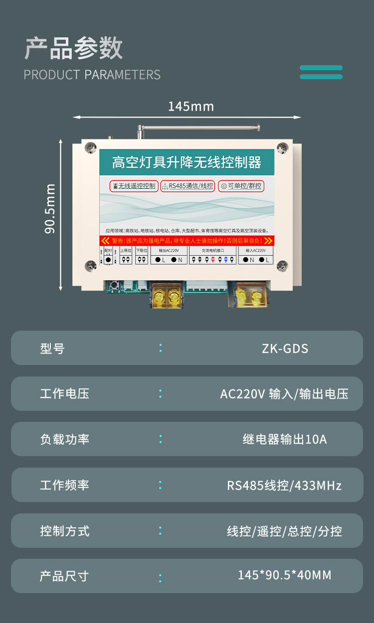 ZK-GDS是一款485通信的控制器,可线控,可使用控制面板操控,或使用遥控器遥控