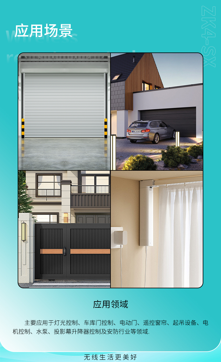 主要麻豆视频APP免费版下载于灯光控制、车库门控制、电动门、遥控窗帘、起吊设备、电机控制、水泵、投影幕升降器控制及安防行业等领域。